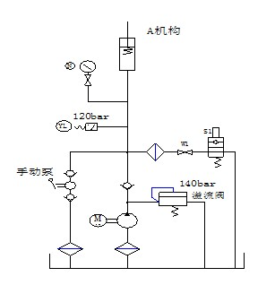 開閘及保壓:使電磁閥S1得電保壓,啟動(dòng)電機(jī)M(電機(jī)后蓋內(nèi)風(fēng)葉為逆時(shí)針向方轉(zhuǎn)動(dòng)),A機(jī)構(gòu)執(zhí)行開閘動(dòng)作。當(dāng)閘完全打開后,系統(tǒng)壓力升高,系統(tǒng)壓力達(dá)到壓力繼電器YL設(shè)定的動(dòng)作壓力時(shí),壓力繼 電器YL發(fā)出信號(hào),電機(jī)停止運(yùn)轉(zhuǎn),系統(tǒng)處于保壓工作狀態(tài)。